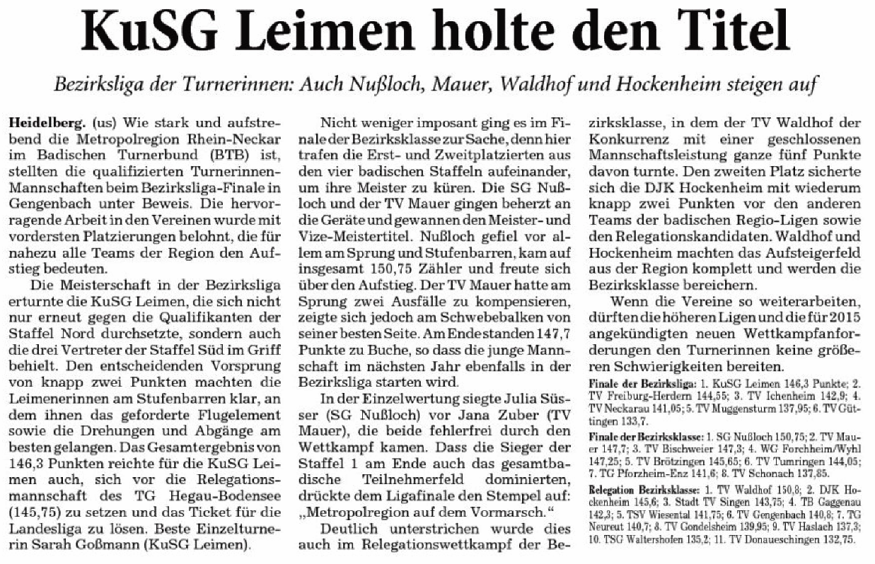 Im Tagesergebnis schaffte es die KuSG Leimen mit 146,3 Punkte vor