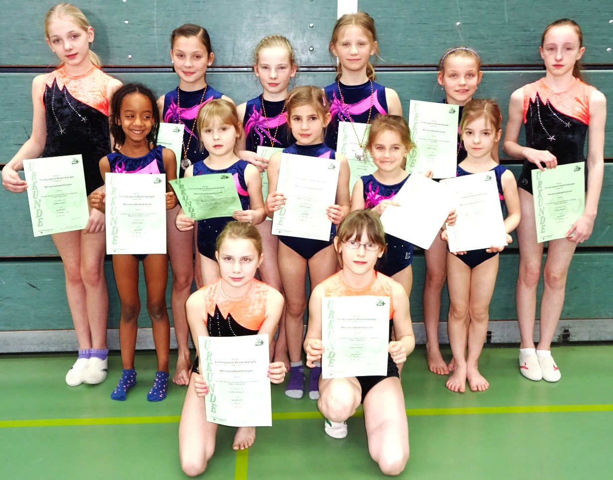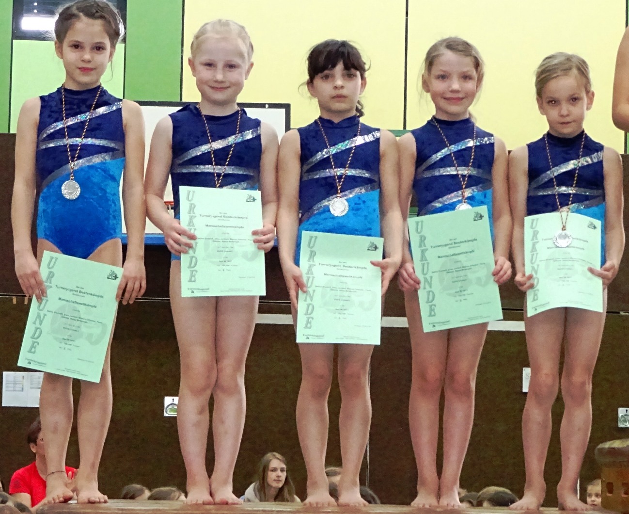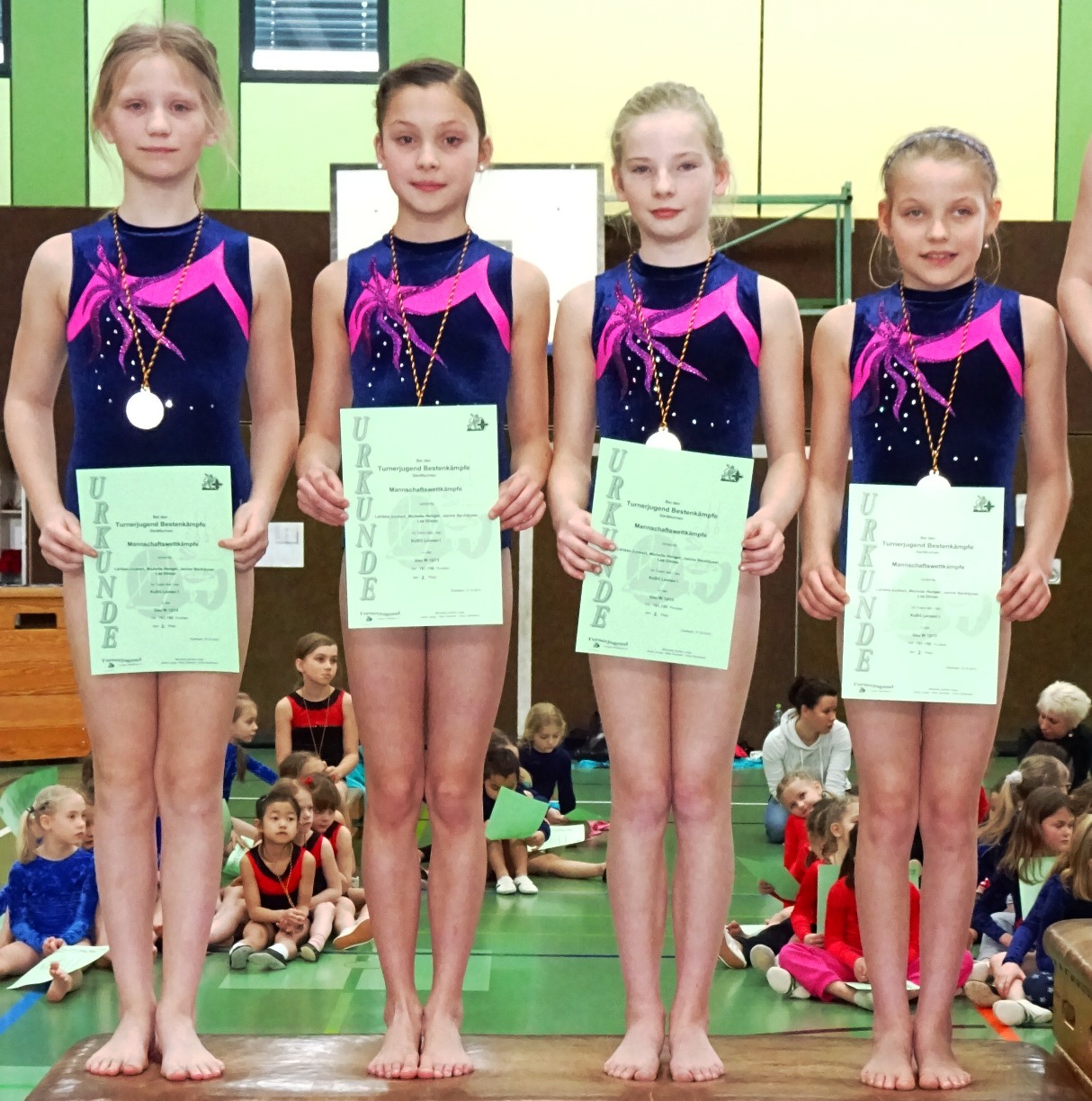 Home P2Anschließend gab es für die P4 (Ronja, Selina, Paula, Elisa, Bianca O.) mit nur 0,1 Punkten Rückstand auf Eberbach erneut die Silbermedaille, und für unsere Allerjüngsten (Lisa, Gaia, Emma-Louise, Finja-Marie) den 5. Platz
